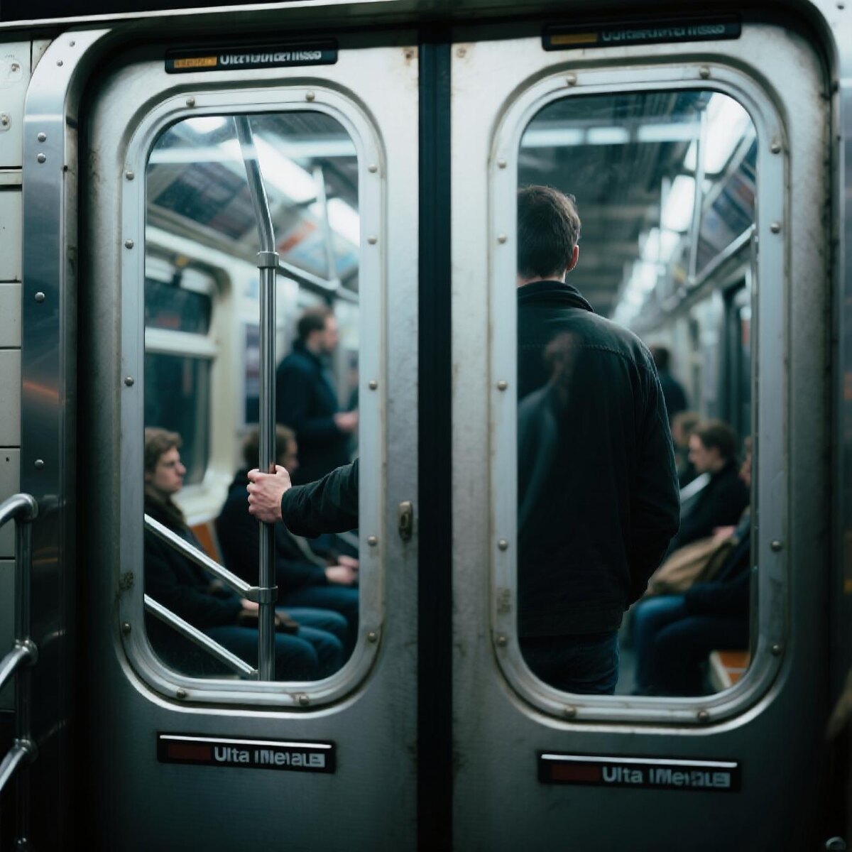 Вы стоите в вагоне метро. Двери только что закрылись. Рядом с вами — пассажир, который стоит спиной к двери, держась за поручень одной рукой.