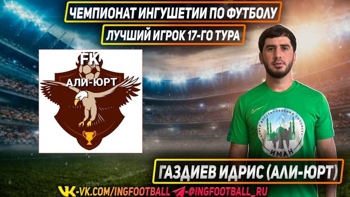 Футболист из Али-Юрта Идрис Газдиев проявил талант на чемпионате Ингушетии Футболист из сельского поселения Али-Юрт проявил свой талант на чемпионате Ингушетии. По итогам прошлого тура полузащитник удостоился звания «лучший игрок», сообщил корреспонденту газеты «Сердало» президент Федерации футбола Хаваж Халухаев. «В игре с ФК «Хамхи» из Сунжи Идрис участвовал во всех пяти голах своей команды, он забил один гол и отдал четыре голевые передачи. Такой результат можно назвать потрясающим, так как в первом тайме счет выходил 1:4 в пользу сунженцев. Однако ФК «Али-Юрт» не захотела отдавать лидерство противнику. По итогу счет вышел 5:4», – проинформировали печатное издание. Федерация футбола по Республике Ингушетия поздравляет Идриса с заслуженным признанием и желает дальнейших успехов на футбольном поприще.