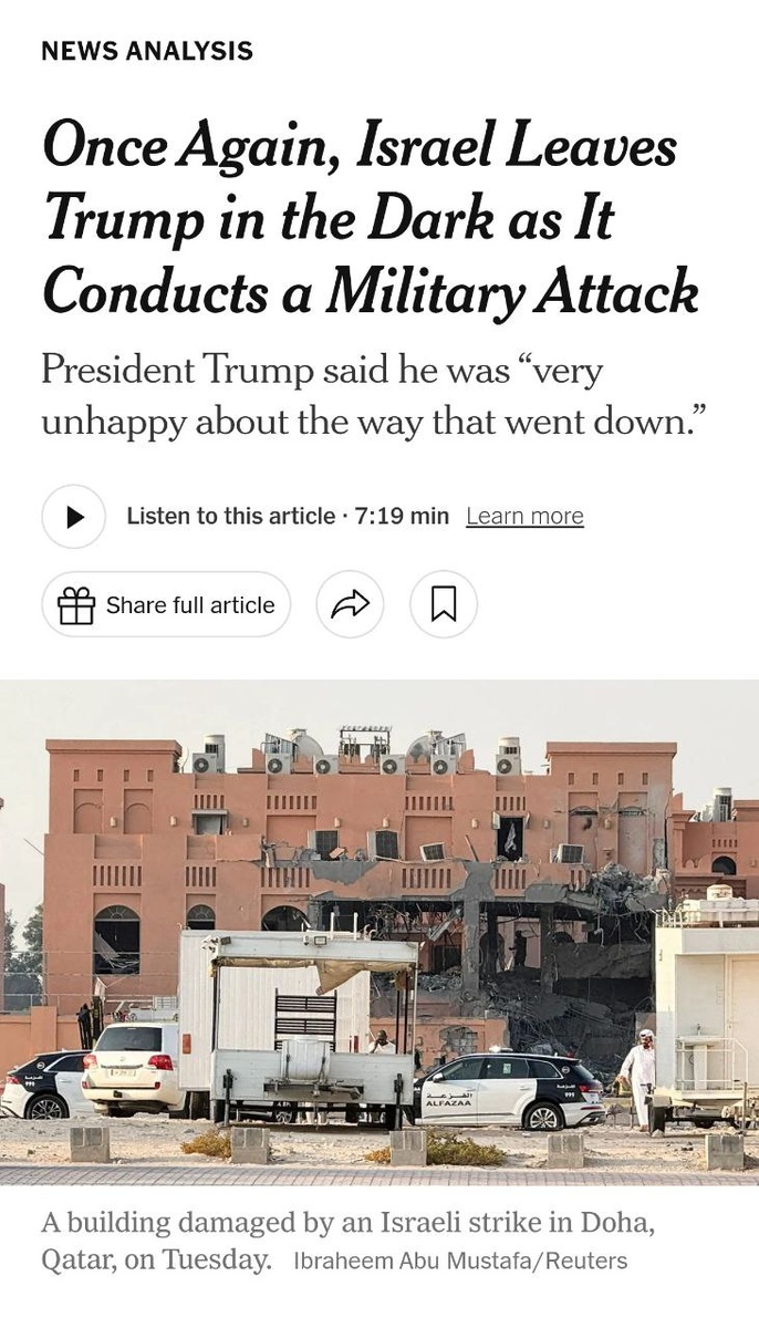 Trump may release ‘full statement’ about how he learned about attack on Qatar — NYT reports 'Very unhappy,' says after latest military move Felt ‘very badly about the location of the attack’ But adds: ‘However, eliminating Hamas, who have profited off the misery of those living in Gaza, is a WORTHY goal’