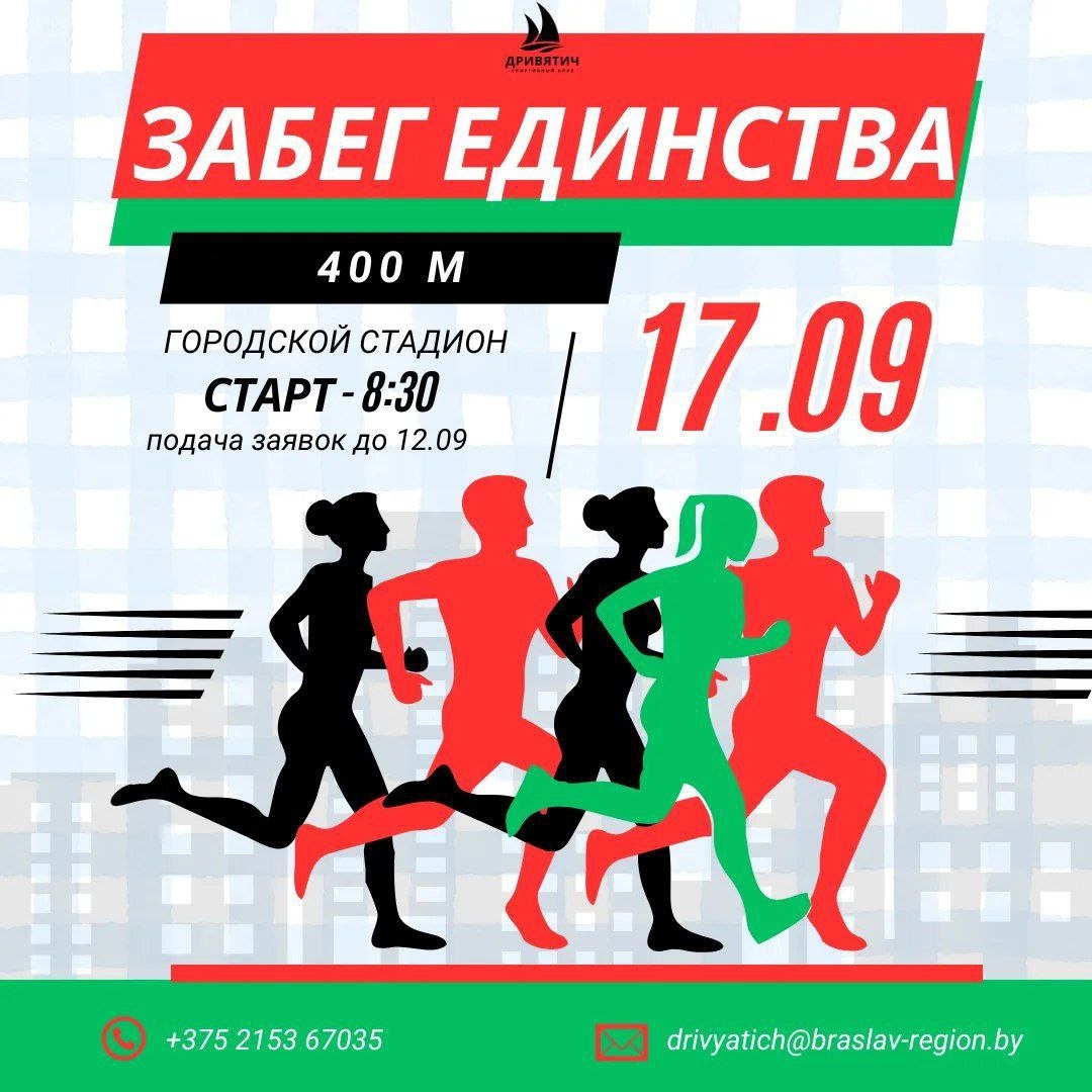🏃♀️➡️🏃➡️17 сентября на городском стадионе состоится 🇧🇾 "Забег Единства".