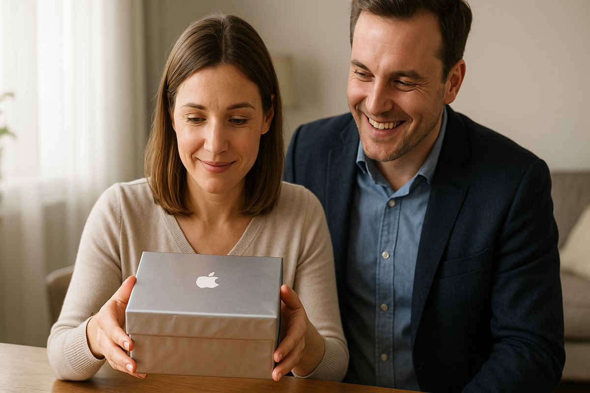 — голос мужа прозвучал торжественно, и он с улыбкой протянул коробку, завернутую в серебристую бумагу.