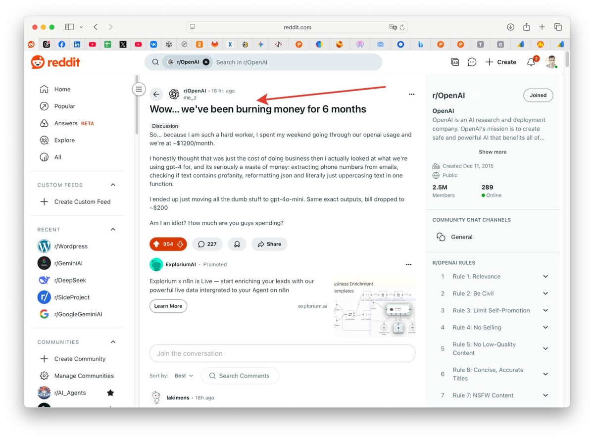 Парни обнаружили, что ежемесячный счет около 1200$ за GPT 4 оплачивают за: вытягивания телефонов из писем, проверки текста на грубости, переформатирования JSON, перевода текста в верхний регистр и т.п.
