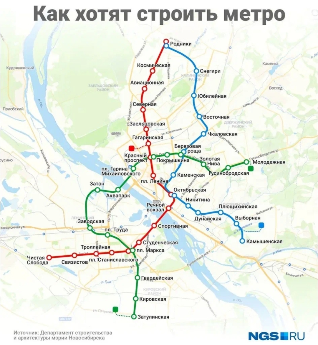 "«Минскметропроект» рассчитал темп строительства метро в Новосибирске до 2055 года: планируют строить со скоростью полторы станции в год, работы будут вести участками, с определённой этапностью. Генеральная схема предполагает появление 45 новых станций."