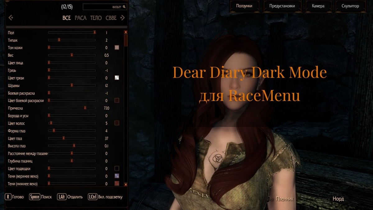 Дорогой дневник – тёмный реплейсер для RaceMenu (SE-AE