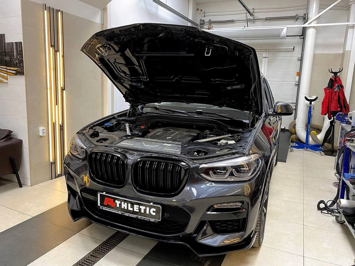 BMW X3 G01 30D ИЗ САМАРЫ (102 тыс. км) ✅ Выполнили: - чистку впуска, удаление вихревых заслонок - удаление сажевого фильтра - промывку форсунок - отключение EGR и Adblue - чип-тюнинг двигателя и АКПП До: 249 л.с., 620 Нм После: 320 л.с., 720 Нм ⚙️ Работы со впуском: - Коллектор отмываем в ультразвуковой мойке - Каналы и клапаны очищаем по заводской технологии BMW (орехоструй) - Изношенные прокладки заменяем на новые оригинальные - Удаляем вихревые заслонки и восстанавливаем герметичность - После сборки проверяем герметичность системы с помощью дымогенератора 🔧 Удаление сажевого фильтра: - Сохраняем катализатор - Используем аргонодуговую сварку - Проверяем герметичность выхлопной системы дымогенератором 📈 Прошивка: - Настройку делает штатный калибровщик Athletic Motors - Используется лицензированное оборудование, которое не выводит из строя электронику - Сохраняется ресурс двигателя и коробки передач 🚀 Результат: - Оптимизированы точки и время переключения передач при интенсивн