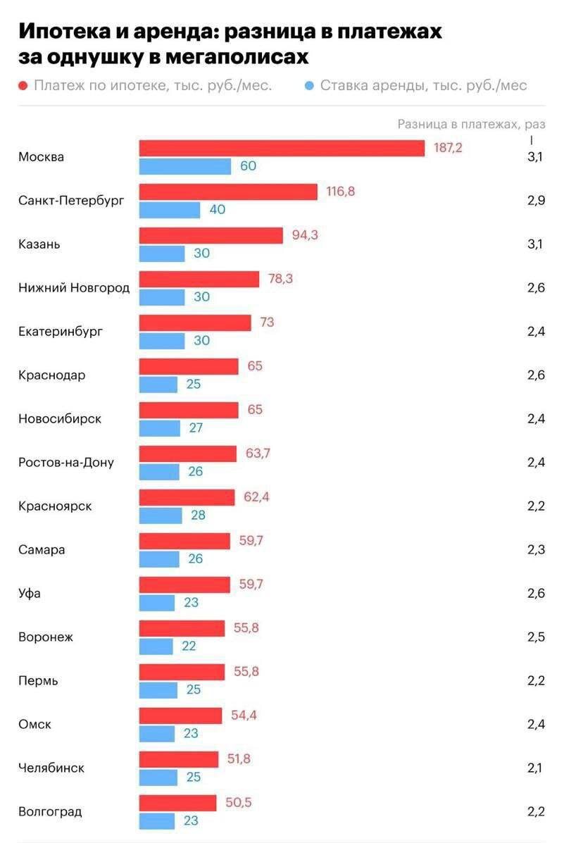 Трёхкратная разница: для меня аренда жилья в городах-миллионниках России оказывается намного выгоднее ипотеки. Я внимательно следил за ситуацией на рынке недвижимости, и могу сказать — съём жилья в больших городах сейчас гораздо дешевле, чем покупать квартиру в ипотеку. По моим наблюдениям и данным экспертов, аренда однокомнатной квартиры в городах-миллионниках обходится в 2–3 раза дешевле ежемесячного ипотечного платежа за аналогичное жильё. Это заставляет меня серьёзно задуматься о том, что съём — порой более разумный и финансово выгодный вариант. Сравнение моих затрат на аренду и ипотеку: В среднем аренда однушки в крупных городах — от 30 до 50 тысяч рублей в месяц, в зависимости от района и состояния квартиры. В то же время, ипотечный платёж за такую же квартиру нередко достигает 40–100 тысяч рублей и даже выше, особенно если речь о новостройках или центральных районах. Почему так происходит? Есть несколько причин: Высокая стоимость недвижимости в городах-миллионниках. Кредитн