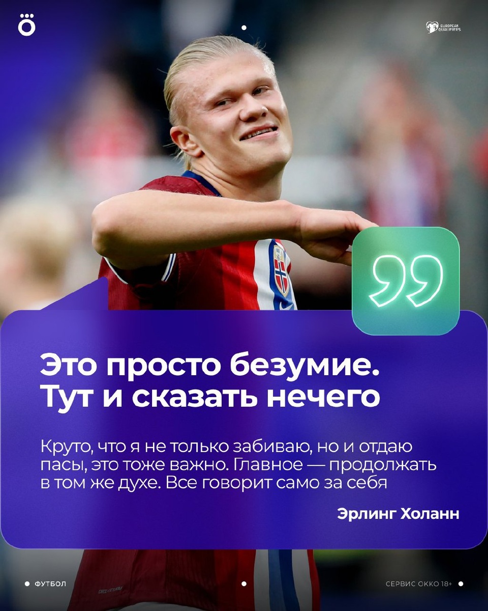 Эрлинг Холанн высказался о своем пента-трике и двух результативных передачах в матче против Молдавии 💬 Страшно представить, что ждет Израиль, Эстонию и Италию в следующих матчах... 😳