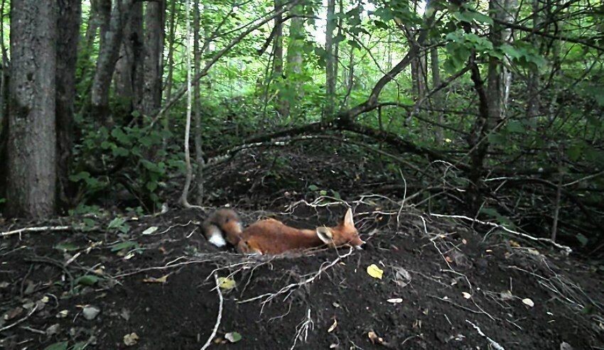 В Ленобласти храбрый лисенок отважился отдохнуть в кроватке кабанихи
