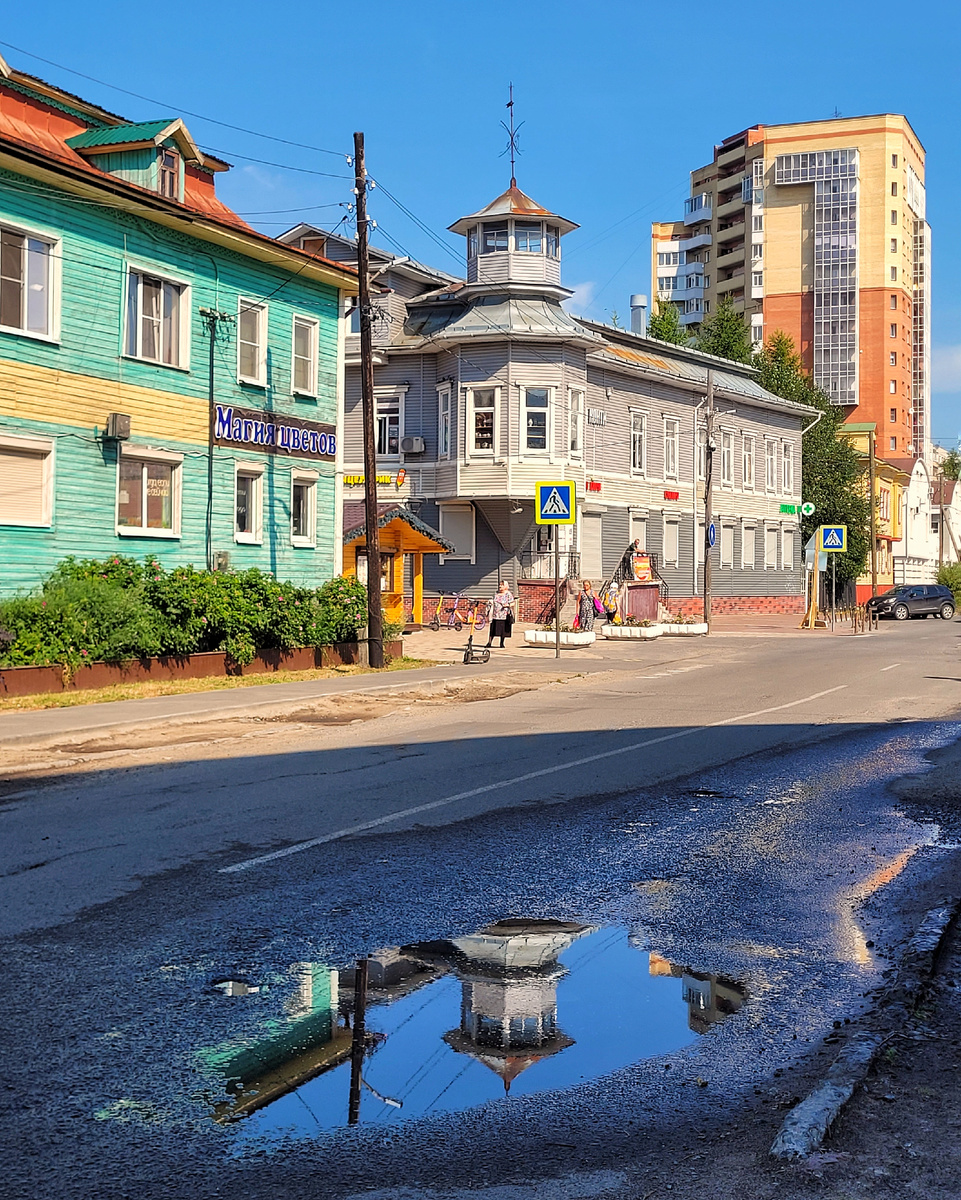 ...что всё это в старинных деревянных домиках, которые мы сравнивали с вологодскими. В Архангельске они попроще, но тоже чудесные. И рядом тротуарчики деревянные, как раньше — очень здорово по ним пройтись. Ну и скульптуры везде — мне особенно радостно было навестить Степана Писахова и Сеню Малину.