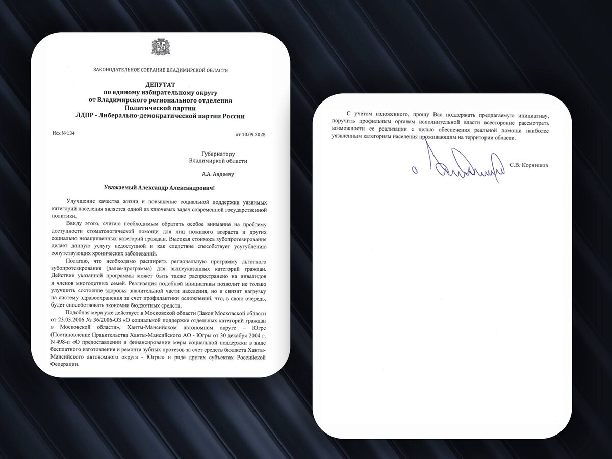 🦷Владимирское региональное отделение ЛДПР направило письмо губернатору области Александру Авдееву с предложением расширить программы