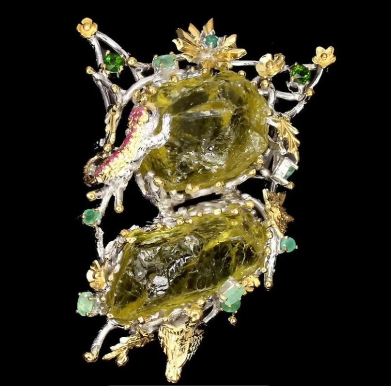 Странная вещь, броши вроде вышли из моды, а тут на канале их рассматривают с большим удовольствием - показы брошек охватывают невероятное количество людей в просмотрах. Ну кто я такая, что бы противится? Скажите странная? Угу!!! И этим привлекла мое внимание. А как размер увидела и вовсе в осадок ушла. 15 000 рублей, Серебро 925 пробы, брошь-подвес (есть два типа крепежа). Покрыта 14 каратным белым золотом. Вставки - лимонный кварц, изумруды, хромдиопсиды, рубины и сапфиры белые. РАзмер броши - 75мм на 56 мм. Ручная работа. Восторг! Завитушечки...Чистота камня, сохранность - смотрите... И все таки фон, на котором носят данную красоту - не маловажен. На лиловом платье данная брошь вот так будет играть и привлекать к себе внимание. 60 000 рублей. Антикварная золотая брошь с природными цитринами, Италия, конец 19 века. Материал - золото 750 пробы, серебро 800 пробы, природные цитрины (более 7 карат). Длина - 5,5 см. Вес - 8 грамм. На черном фоне эта брошь была бы лучше... Но все равно -