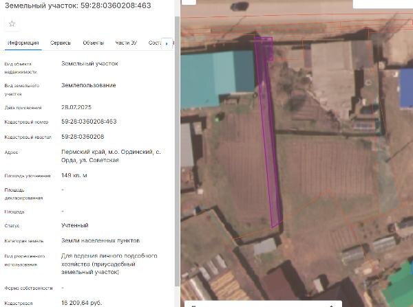 Название: Земельный участок с кадастровым номером 59:28:0360208:463, вид разрешенного использования –для ведения личного подсобного хозяйства (приусадебный участок), категория земель - земли населенных пунктов, по адресу: Пермский край, Ординский м.о., с. Орда, ул. Советская, площадью 149 кв.м. Канал: Госземля Пермский край Область: край Пермский Район: м.о. Ординский Населенный пункт: с Орда, ул Советская Локация: Смотреть на карте ВРИ: Для ведения личного подсобного хозяйства (приусадебный земельный участок) Кадастровый номер: 59:28:0360208:463 Кадастровая стоимость: 16209.64 Вид сделки: Продажа Площадь: 149 м² Начальная цена: - руб. Дата завершения: 10.10.2025 Подробнее: ГИС ТОРГИ #госземля #земляотгосударства #земля #земельныйучасток #земельныеторги #торги #аукцион #продажаземли #продажа #пермскийкрай