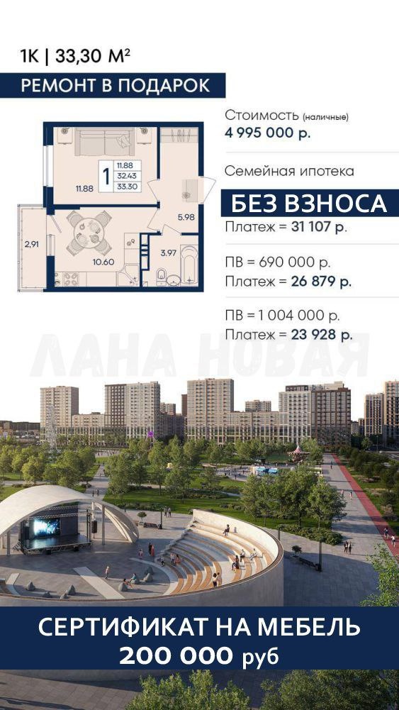 Ипотека без ПВ+ремонт+200 тыс в подарок! Ипотека без первого взноса+ремонт в подарок🎁+сертификат на 200 000 руб🎁 на мебель - это все Вам доступно при покупке 1-комнатной квартиры в новостройке в Прикубанском округе Краснодара Сейчас старт продаж, и только первые 100 покупателей получают готовый ремонт от застройщика в подарок 🔑 🕰Сроки акции: до 30.09.2025 или до исчерпания лимита в 100 квартир 👉Бесплатно помогаю разобраться с особенностями жилья на Юге и найти квартиру в новостройке для Вашей новой истории ❤ 💪Пока никто не знает, а мы с Вами разбираем самые крутые варианты Мои контакты: +79184245419 +79282915705 Лана 🤝 📲Напишите на WhatsApp: https://wa.me/message/AF3WFFTBMH5EK1 📲Напишите на MAX: https://clck.ru/3Nwzgk Мой блог на YouTube: https://youtube.com/@lana_novaya #ипотекабезвзноса #ремонтотзастройщика #ремонткраснодар #переездвкраснодар #переезднаюг #мебелькраснодар #мебельвподарок #ремонтвподарок #ипотека2025 #сертификатнамебель