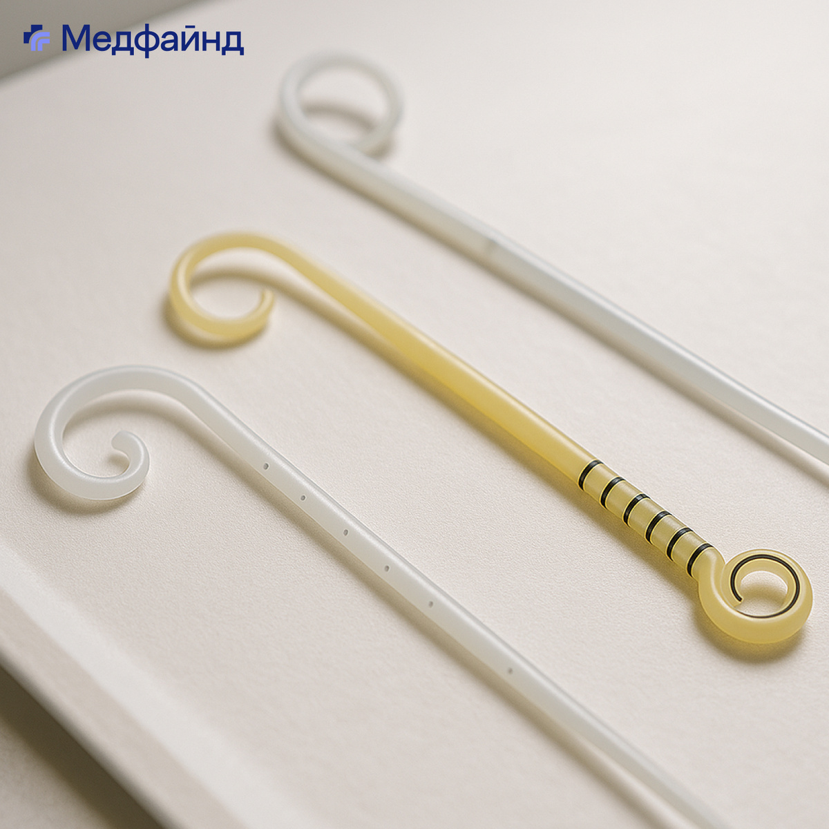 - Тип конструкции: с одной или двумя петлями, открытый или закрытый конец, гидрофильное покрытие или его отсутствие.