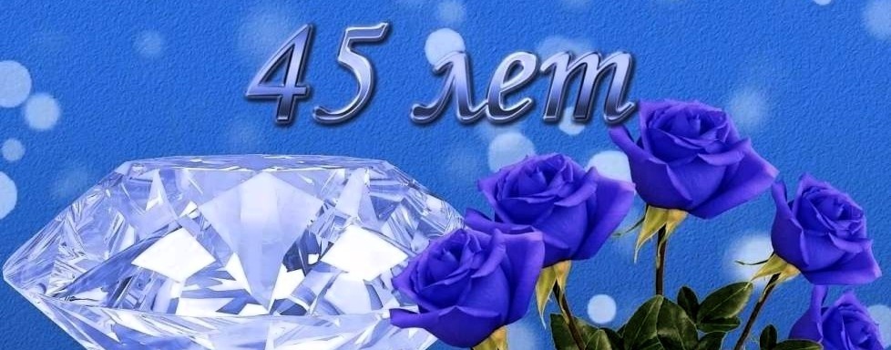45 лет – очень важная и значимая дата для семьи. Супруги прожили достойную долгу жизнь. Традиционно символом сорок пятой годовщины является сапфир, а сама дата называется «сапфировой свадьбой». Название своё праздник получил не случайно, ведь сапфир содержит в себе огромное количество титана, который, кстати и придаёт тот узнаваемый голубой оттенок, присущий камню. Титан – это невероятно прочный материал, точно также, как и любовь супругов, отмечающих этот юбилей. Поэтому сапфир символизирует собой прочность отношений, крепкий семейный фундамент, основу, выстроенную за долгие 45 лет. Столь значимую дату стоит отметить как следует. Хорошо, если получится отметит её в ресторане или кафе. Можно устроить грандиозное празднество и собрать за праздничным столом всех своих друзей и родственников. Так как сапфировая свадьба ассоциируется с синим цветом, то и украшать место, где будет проходить праздник нужно в синих и голубых оттенках. Летом идеальным местом проведения торжества станет берег о