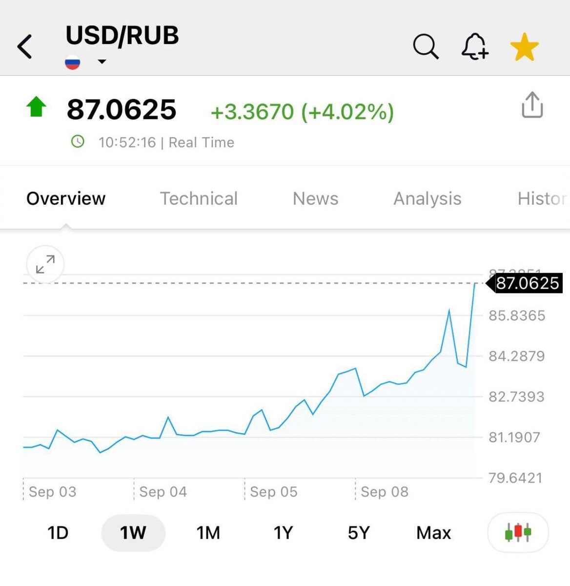 ❗Курс $ вырос до ₽87 на внебиржевых торгах — такого не было с марта 2025 года