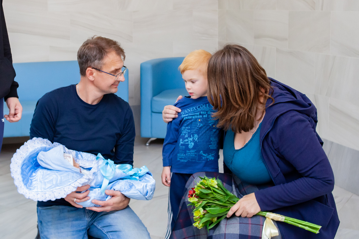 Леньку попросила привезти на выписку я. Это, конечно, сразу усложняло Андрею задачу - роддом, работа и дом/сад расположены, по сути, по углам равностороннего треугольника. Проще всего было бы обойтись без Лёни. Но у меня душа изболелась по младшему, в одночасье ставшему старшим. Не хотелось приводить его вечером из сада в изменившийся дом. Пусть уж он увидит, что новый член семьи появился в довесок ко мне.