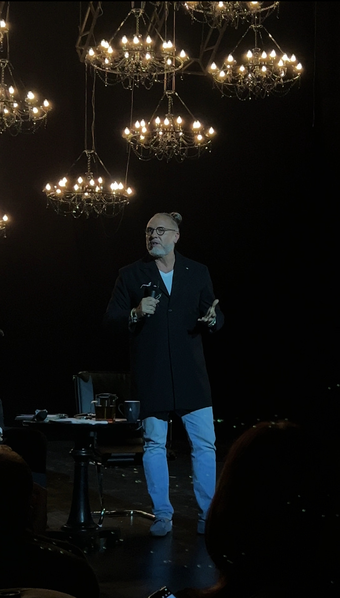 В моём любимом театре «Модерн» состоялось официальное открытие 38-го сезона!!! Художественный руководитель театра Юрий Грымов вместе с директором Александром Бенишем рассказал нам о новшествах творческих и материально-технических, о приобретениях труппы, о планах на ближайший театральный год. В декорациях премьерного спектакля по Ремарку «Ночь в Лиссабоне» (завершение триптиха о Второй мировой войне), ГЛАВРЕЖ представил ЗАВЛИТа (да,да… теперь в «Модерне» есть такая должность)! Им стал…. Давид Винер, журналист - известный всем нам по выразительным обзорам на главные премьеры Москвы. Невероятно удачное актерское приобретение состоялось «благодаря» преобразованию «Театра Виктюка» в Сцену «Мельников». Заслуженные артисты Дмитрий Бозин и Людмила Погорелова, Анна Нахапетова и Михаил Половенко были подверженны сдуванию муки 😅 или мук, связанных с известными событиями. Станислав Мотырев, к сожалению, не был на открытии, но тоже принят в труппу👍🏻 Грымов: «Мельник-сцена опустела, а мы на