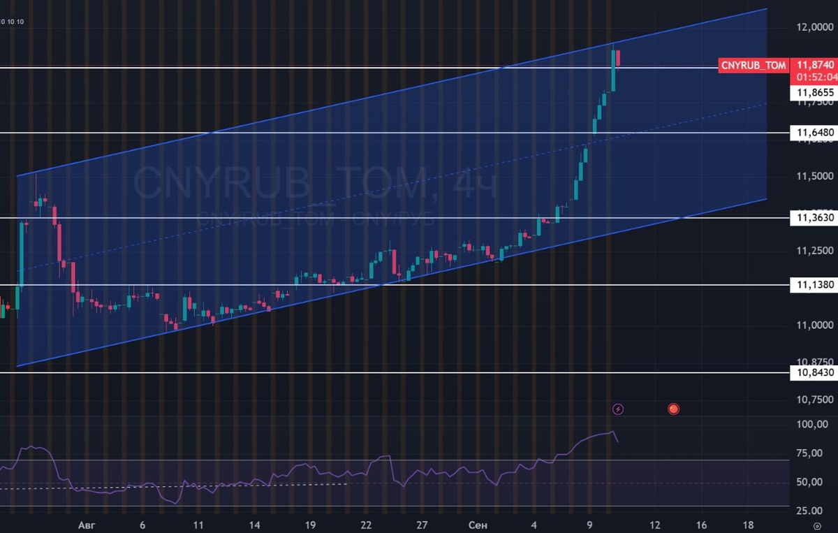 🔤 Юань-Рубль: обновление! 1️⃣ Узрел тут вот такой канал, проведя его между вершинами. 2️⃣ Если такой канал существует, то выше идти и не должны. а значит надо ждать ниже. 🚗 Ближайшая поддержка 11,86. Посмотрим, удержат ли её😏 #юаньрубль #прогнозрубля #юань #рубльдоллар #CNY #CNYRUBF #CNYRUB #bogdanoffinvest