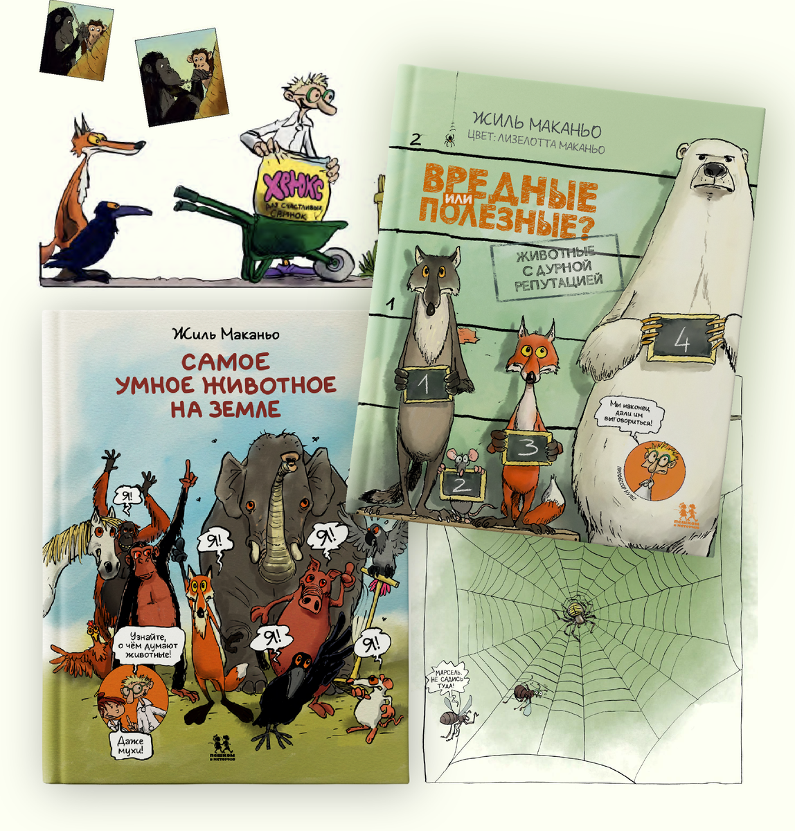 Библиогид опубликовал отрывок из книги Жиля Маканьо «Самое умное животное на Земле». Как-то раз Ворона и Лисица – герои знаменитой басни о лести и хитрости – невзначай решают выяснить, кого стоит считать наиболее интеллектуальным животным на планете. Разрешить спор без посторонней помощи не удаётся, и они идут за советом к учёным. Правда, даже у учёных нет на этот вопрос однозначного ответа, зато они могут рассказать о многих любопытных экспериментах, исследованиях и наблюдениях, посвящённых секретам мышления. Комикс для подростков Жиля Маканьо отсылает читателей к одной из главнейших тайн нашей жизни – сознанию. Есть ли оно у каких-то животных и, если есть, то чем определяется? Существует ли критерий интеллекта, который можно назвать объективным? Не слишком ли люди самонадеянны, когда пытаются мерить ум зверей и птиц по себе? Этих вопросов касается специальный раздел биологии – этология, наука о поведении животных. В книге Маканьо азы этологии раскрываются в юмористическом, подчас сл