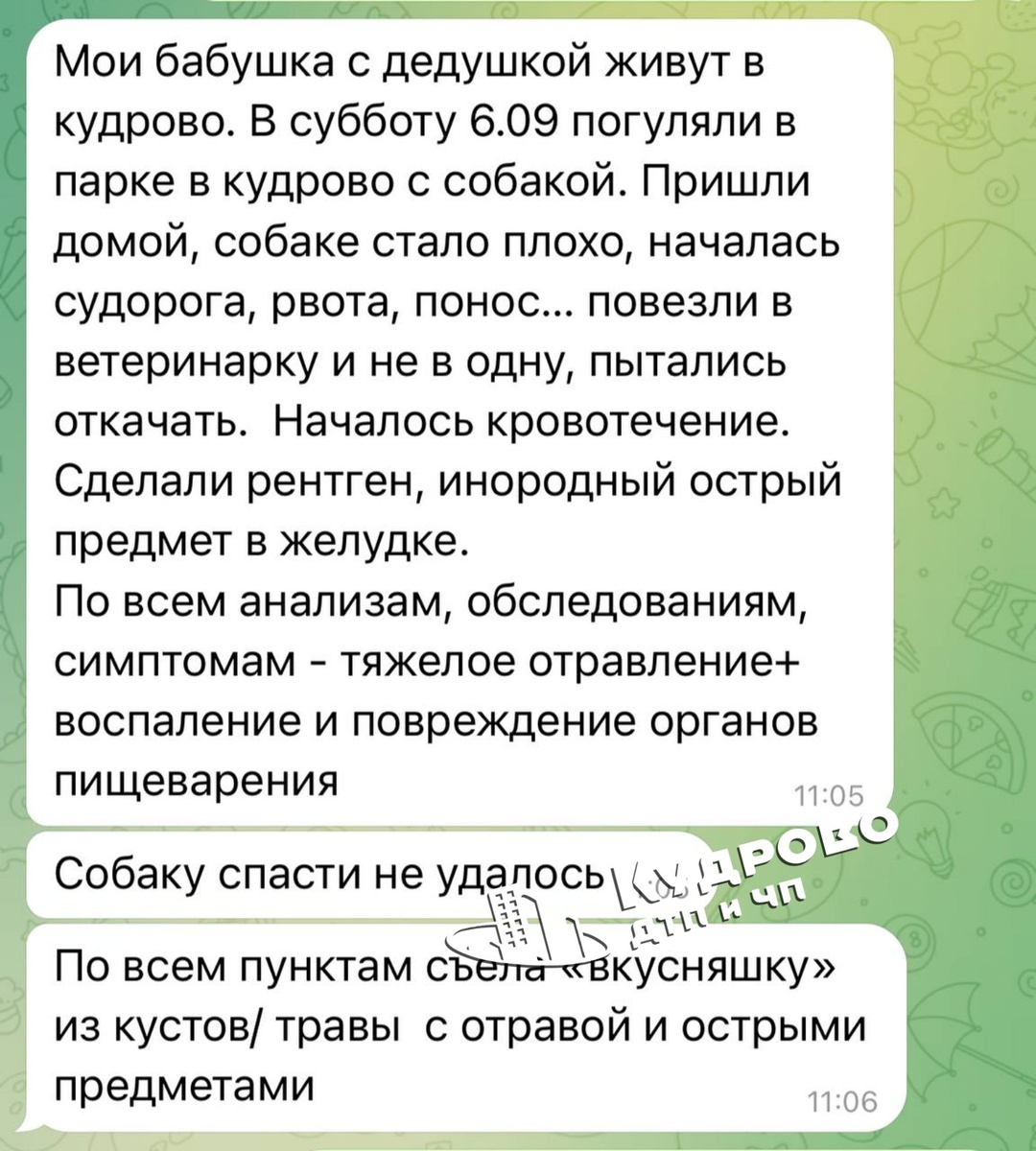 Собаке стало плохо после прогулки в парке Новый Оккервиль.