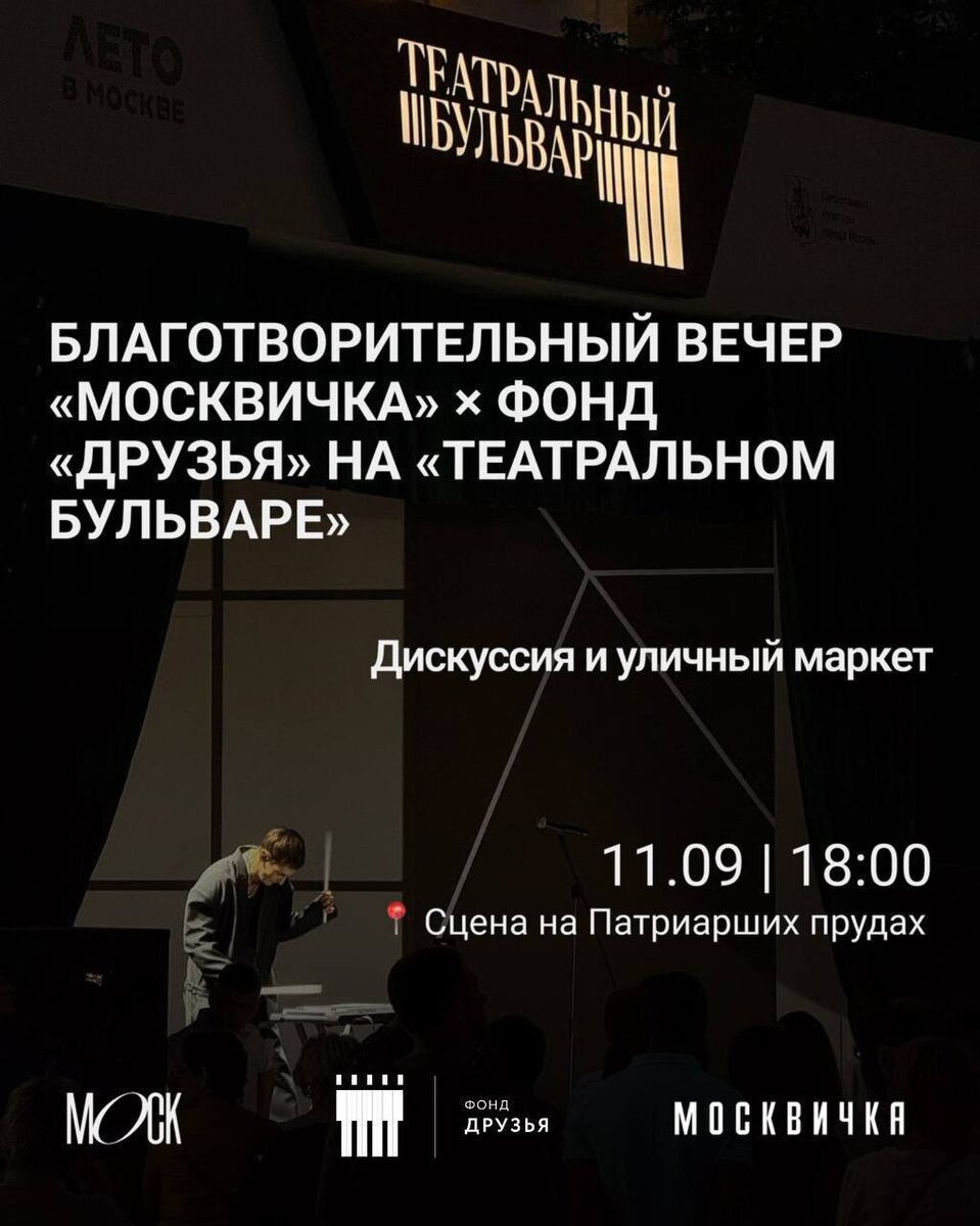 Дорогие подписчики «Гвоздик» ❤️ От лица «Москвички» приглашаю вас на благотворительный вечер в рамках фестиваля «Театральный бульвар» на Патриарших прудах. При поддержке фонда «Друзья» мы проведем дискуссию о важности благотворительной работы и о том, как добиться доверия аудитории. Ждем в 18:00 11.09 И если хотите прийти, пишите мне фио в личку @darinaalekseeva