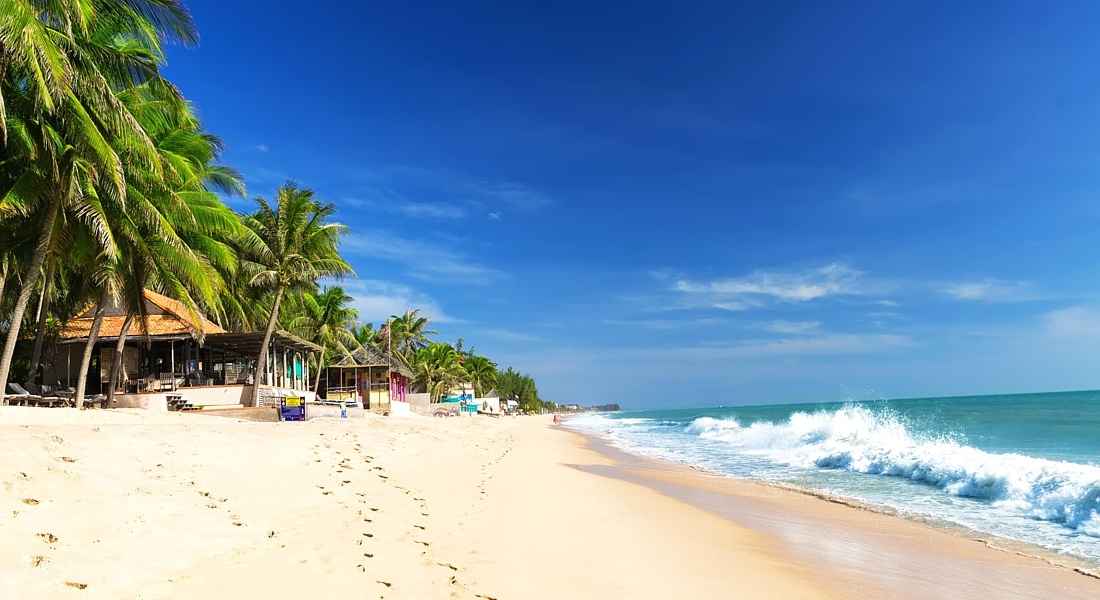 Фантьет-Муйне — один из самых популярных курортов Южного Вьетнама, знаменитый белоснежными пляжами, уникальным микроклиматом и развитой туристической инфраструктурой. Курорт расположен на побережье Южно-Китайского моря в провинции Бинь Тхуан, к северо-востоку от Хошимина. Фантьет и его район Муйне находятся в зоне тропического климата, где практически круглый год царит тепло и много солнечных дней. Средняя температура воздуха — от +25°C до +32°C, с двумя выраженными сезонами: дождливым (май-октябрь) и сухим (ноябрь-апрель). Благодаря песчаным дюнам и бризу, даже в дождливый сезон здесь редко бывают настоящие тропические ливни, а количество солнечных часов одно из самых высоких во Вьетнаме. Сухой сезон считается идеальным для пляжного отдыха и водных видов спорта, особенно для кайтсерфинга и серфинга. Главная изюминка курорта — протяжённая полоса пляжей с мягким светлым песком, чистой водой и живописными дюнами. Пляжи разделены на несколько зон: Муйне — лучший для серфинга и кайта, Хам