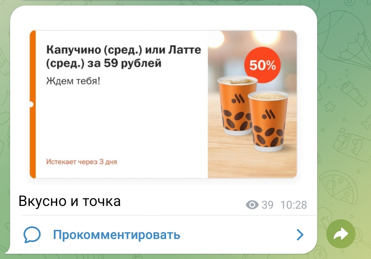 Решила соединить сразу три акции в один заход. В тг канале делилась, что на кофе скидка 50%