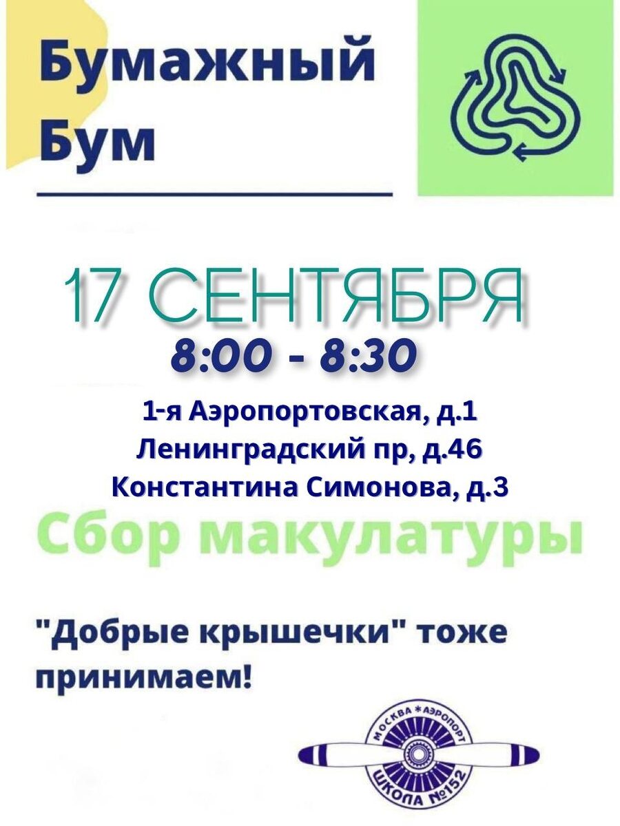 ⚡️Сбор макулатуры ⚠️Акции «Бумажный бум» и «Добрые крышечки» пройдут 17 сентября. ⏰Время сбора 8:00-8:30 🌏 Вместе мы делаем мир чище❗️ 🙌Приглашаем всех к участию! #ШколаВоплощающаяМечты #Школа152 #ДОНМ