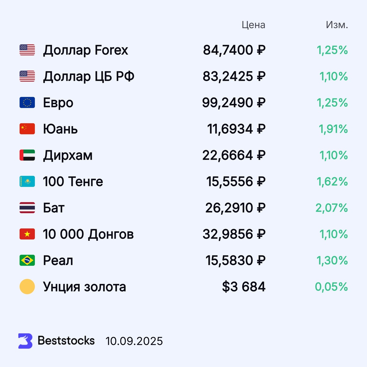 Курсы доллара США, евро, юаня, дирхама, тенге и золота на текущий момент #валюта #курс #доллар #евро #юань #дирхам #тенге #золото ••••• 🔥 Получайте более 400 свежих прогнозов по акциям каждый день. Выбирайте самый высокий потенциал, рейтинг аналитика, срок прогноза и биржу, где торгуется акция.