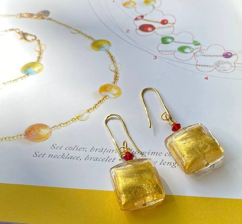 Серьги квадратные с золотом из муранского стекла обладают неизменной притягательностью