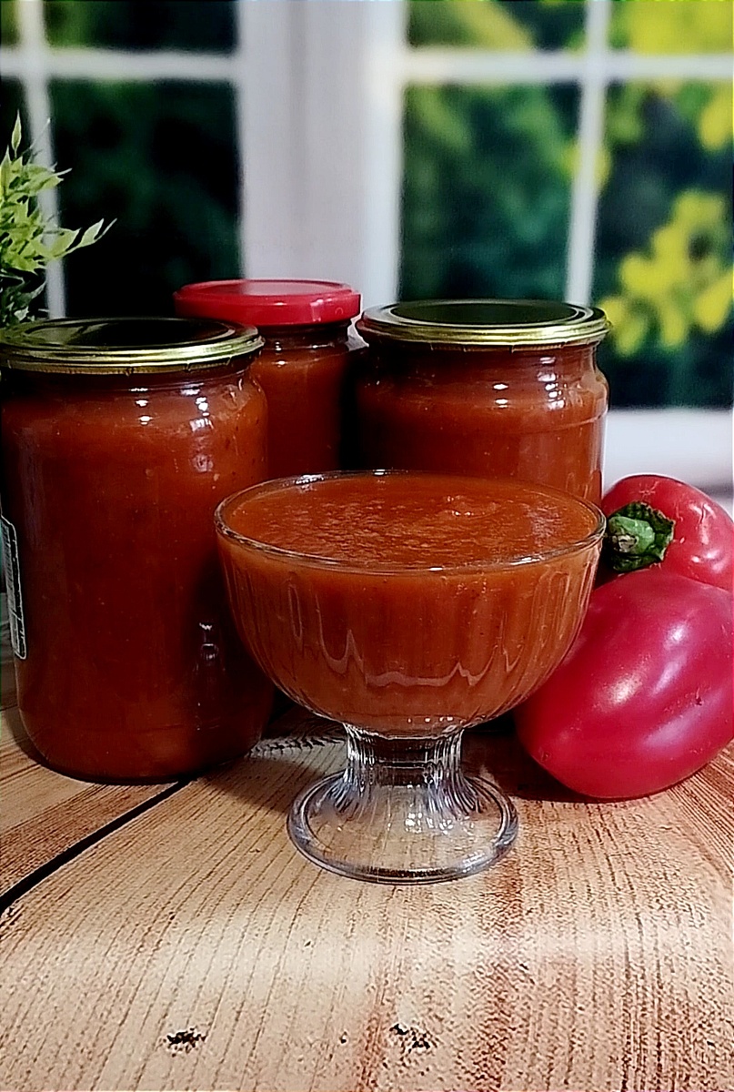 Один из самых вкусных соусов, которые я смело могу включить в число любимых, это соус Сацебели. Готовится очень легко, а по вкусу и аромату ему просто нет равных. Ингредиенты Помидоры ( я использовала сорт Сливки, они мясистые и сладкие, в них мало сока) -2 кг Перец болгарский, мясистый -700 г Лук репчатый-300 г Чеснок- 1 крупная головка Хмели-Сунели - 2 ст.л. Кориандр молотый - 2 ст.л. Паприка сладкая - 2 ст.л. Зелень базилика ( можно использовать красный и зелёный) по 1 пучку Соль 1 ст.л. без горки Сахар 2-2,5 ст.л. без горки ( соль и сахар можете довести по своему вкусу) Масло растительное рафинированное - 180 г Уксус 9 % - 1 ст.л. Приготовление В кастрюлю, в которой будете готовить соус налить растительное масло, хорошо его прогреть и отправить нарезанные произвольно лук и чеснок, тушить на среднем огне минут пять, периодически помешивая, чтобы лук и чеснок не пригорели. Помидоры и перец нарезать крупным кубиком и отправить к луку. Добавьте все приправы, базилик нужно слегка из