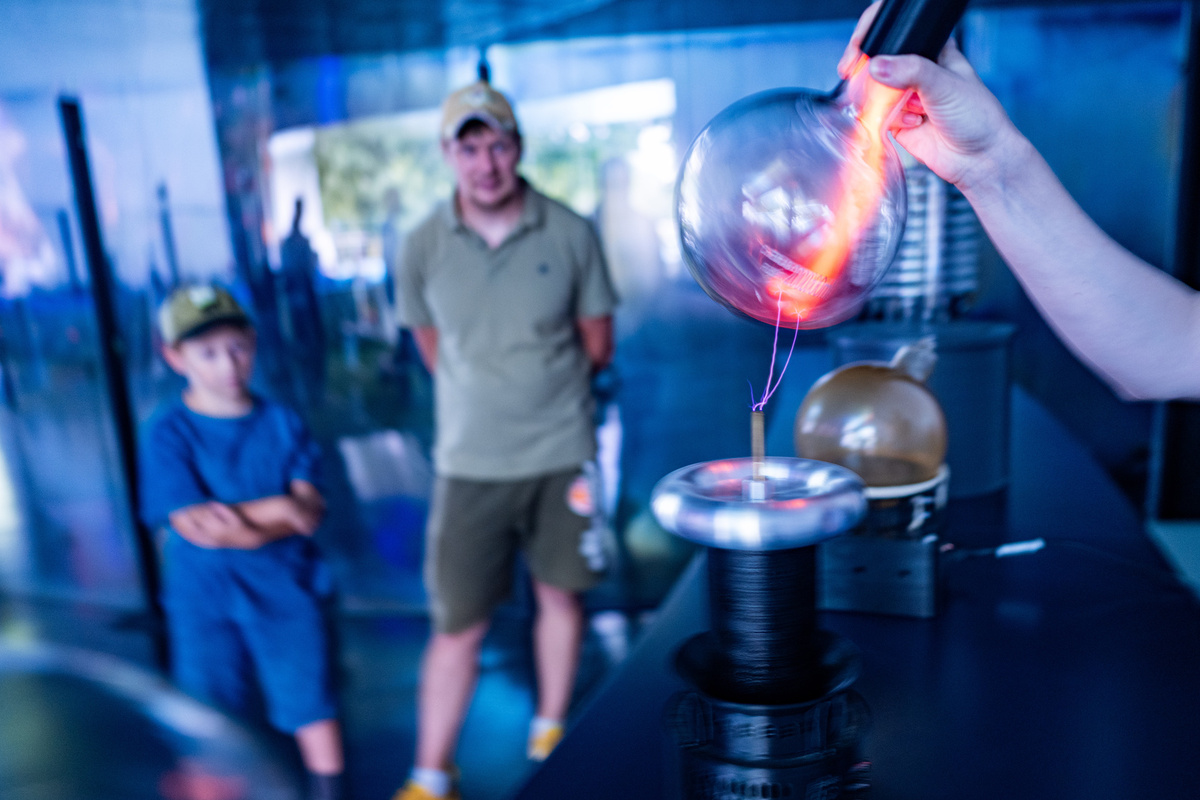 С 1 августа по 14 сентября в парке пятидесятилетия Октября на площадке программы мэра Москвы «Мой район» работает павильон «Робототехника» — один из крупнейших объектов форума-фестиваля «Территория будущего. Москва 2030». Его площадь составляет 2500 квадратных метров. Здесь представлены достижения в области робототехники, нейротехнологий, электроэнергетики и визуальных научных решений. Пространство объединяет выставочную экспозицию, интерактивные зоны, научные шоу и спортивные объекты. Особое внимание уделено визуальному исследованию электричества как основы технологий будущего. В интерьере установлены стеклянные колбы с декоративными молниями, а также клетка Фарадея, иллюстрирующая принципы защиты от электромагнитных полей. В этой зоне представлена хронология развития робототехники — от первых экспериментов с электричеством до современных интеллектуальных систем. Центральным событием стала программа «Уголок Теслы» — научное шоу, объединяющее лекцию и визуальный перформанс. Каждые полч
