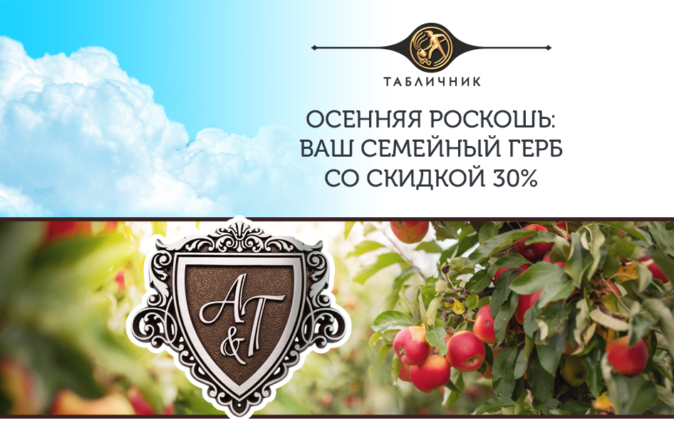 Источник фонового фото на баннере: iStock Осень приносит в дом тишину и размеренность. Вечера становятся длиннее и обволакивают уютом. В такие моменты особенно остро ощущаешь ценность семейного очага. Невольно задумываешься обо всём, что вас объединяет: о чувствах и ценностях, корнях и истории. Герб – красивый способ визуализировать эти размышления и обрести новый символ единства. Тем более, в сентябре вы можете создать семейный герб со скидкой 30%. Сейчас по специальной цене доступен семейный герб «ГМ-1» в стиле ампир. А ампир – это величие, симметрия и торжественность. Дизайн одновременно и строг, и роскошен, в нём нет ни одной случайной линии. В основе лежит простой треугольный щит, по краям украшенный изящной филигранью. Такой герб словно говорит: «Здесь ценят традиции и красоту». Он одинаково уместен и в классической гостиной с камином и лепным потолком, и на фасаде современного дома, которому хозяева хотят придать старинного благородства. Вместо классической геральдики, во многом