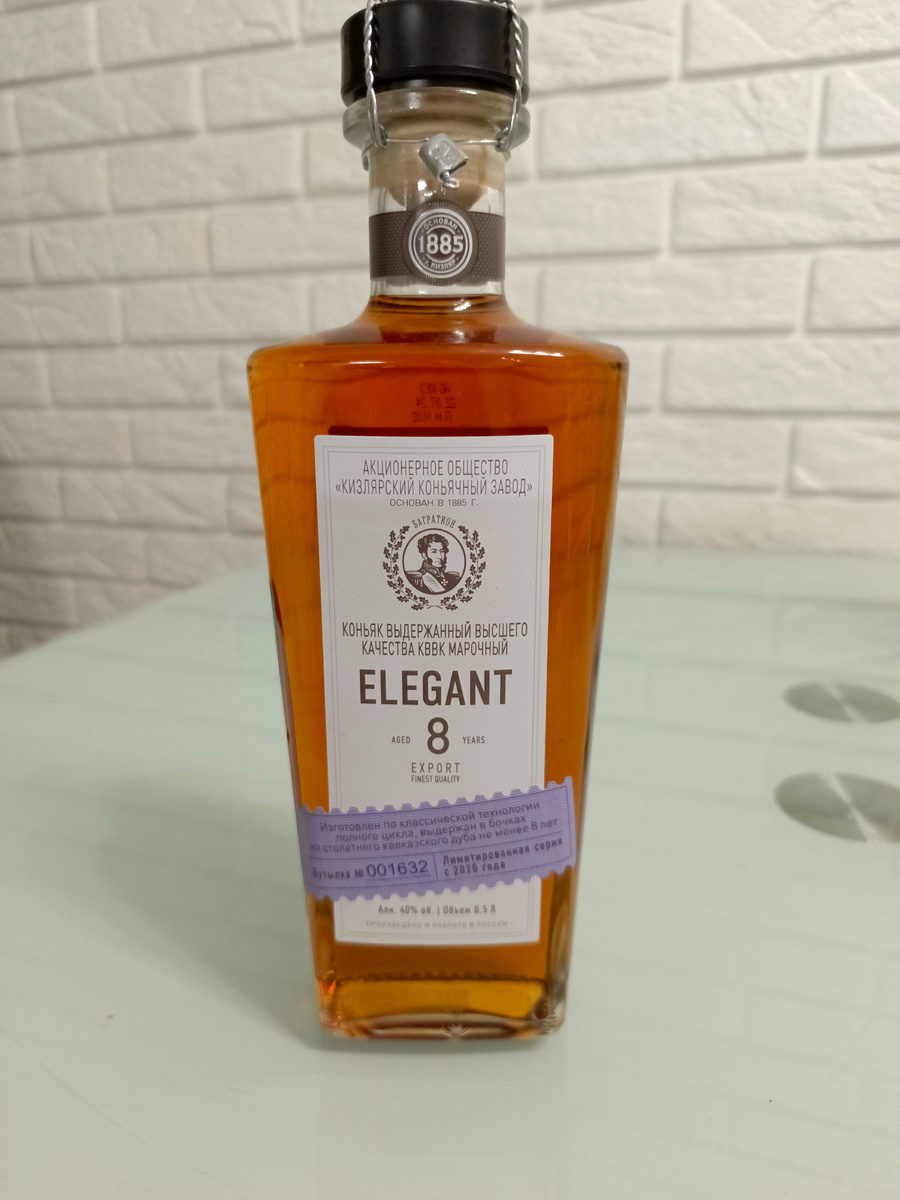 Коньяк выдержанный высшего качества (КВВК) марочный Элегант, серия "Мюзле" представитель АО "Кизлярский коньячный завод" (ККЗ).