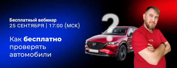 Хочешь БЕСПЛАТНО и БЫСТРО проверять тачки в одном приложении? Расскажем про все схемы на вебинаре «Как бесплатно проверять тачки». Дата и время: 25 сентября в 17:00 по МСК Покажем на практике: — Где и как бесплатно смотреть историю машины — Как автоматизировать поиск авто по своим параметрам — Как бесплатно проверять автовладельцев И многое другое! Бесплатная регистрация Пришлем всем участникам запись вебинара! Спикеры: Дмитрий Шувалов – продакт-менеджер сервиса «Автокод Профи» Вадим Адиев – перекуп и автоподборщик со стажем 21 год, руководитель «Союза профессионалов авторынка» До встречи!