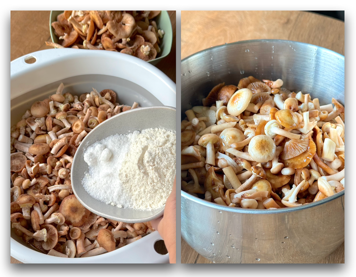 Вы спросите: «Зачем ты добавляешь в сырые грибы муку и соль?» — Отвечаю!