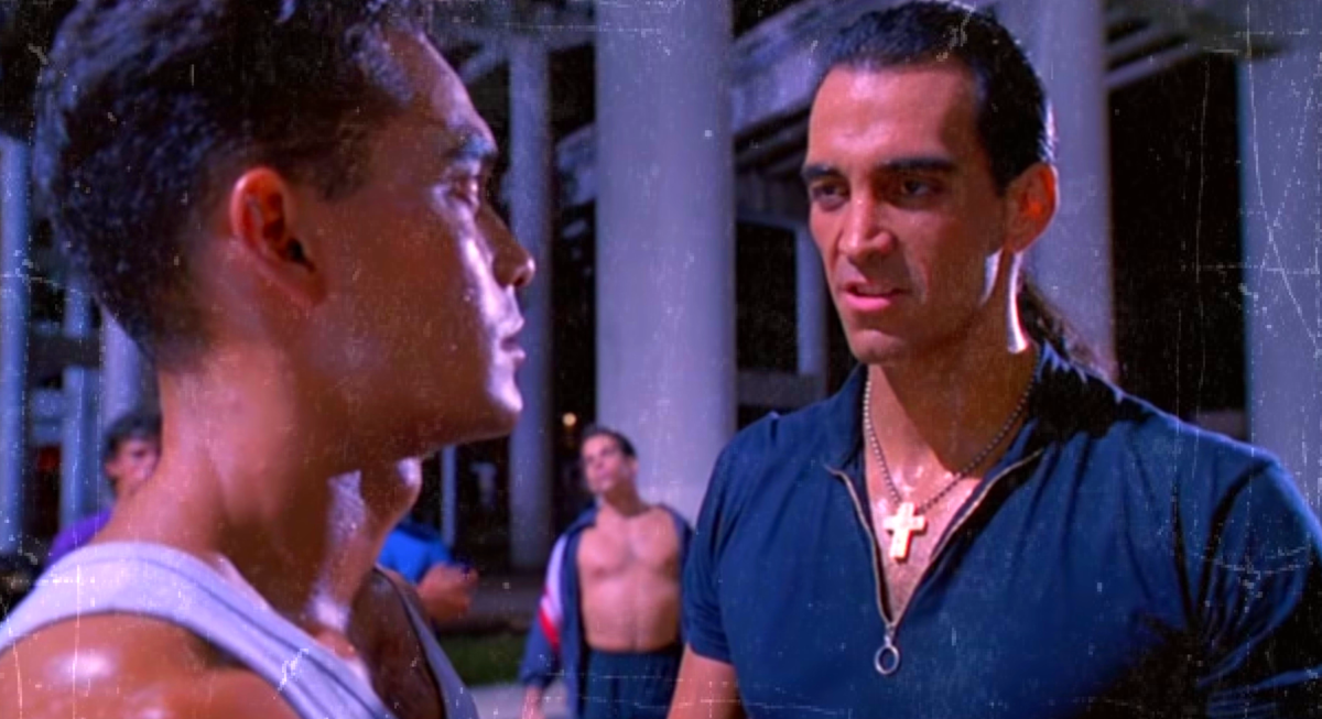 Наиболее зрелищная сцена в фильме - это поединок Марка Дакаскоса с Пако Кристианом. А точнее два поединка. Как в лучших законах жанра американского кино, вначале главный герой должен проиграть свой бой чтобы потом вернуться полным сил и отомстить своему обидчику!
