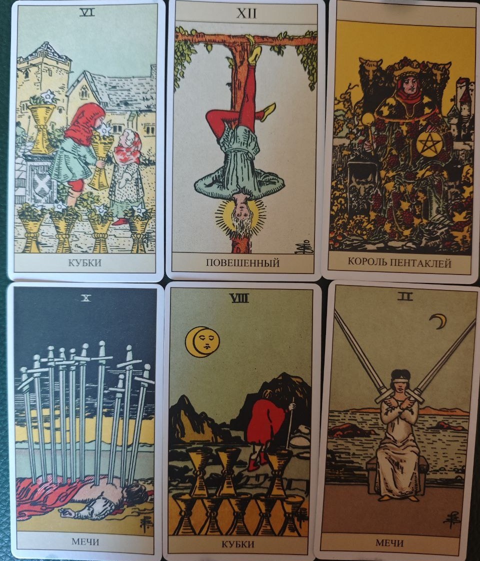 Завис. Выжидает. Делает вид, что ему всё равно, но внутри — тупик: «сейчас написать и сорваться» или «держать лицо»? Мог быть и технический стоп (блок/архив): так легче не поддаться импульсу. Повешенный даёт задержку, Мечи 2 — самоблокировку и страх получить отказ.