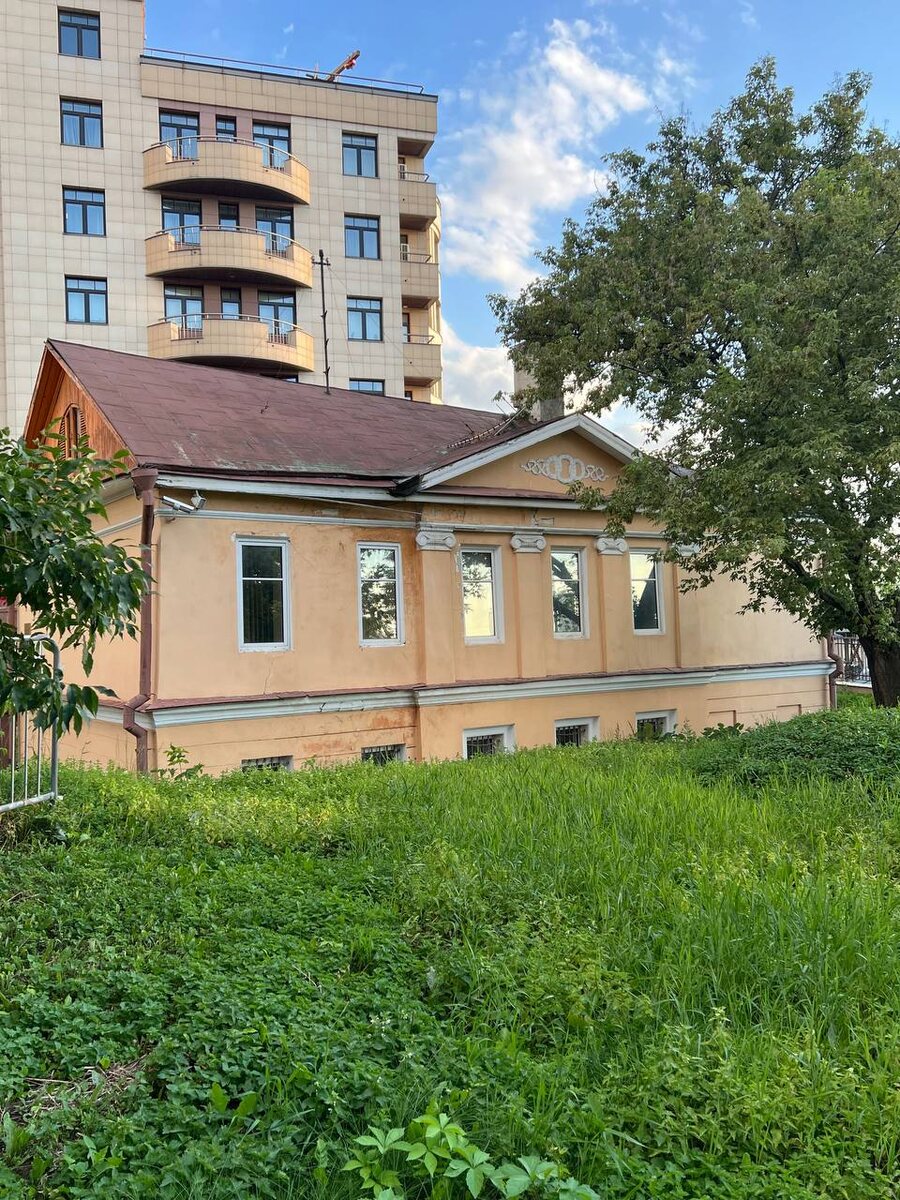Скромный особнячок нежно-розового цвета сейчас находится буквально в яме, по соседству с роскошным и дорогим ЖК.
