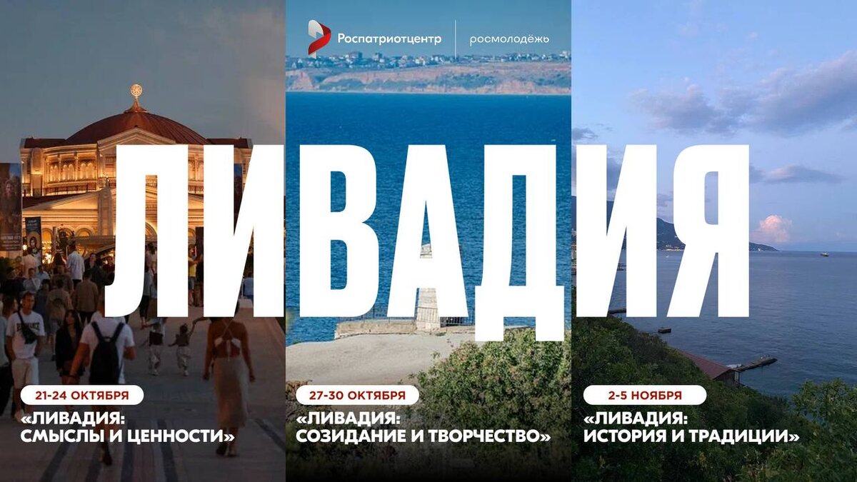 Не успели попасть на «Истоки» в Севастополь? 🥹 Не время отчаиваться, ведь... 📌Роспатриотцентр Росмолодёжи при поддержке Крымской Митрополии РПЦ и Фонда поддержки гуманитарных наук «Моя история» открывает регистрацию на Духовно-просветительскую программу для молодёжи «Ливадия: главные слова о России». Программу объединят три заезда в солнечном Крыму, о которых рассказали выше ⤴️ Скорее переходите по ссылке! Время регистрации ограничено! ❤️ Подписывайтесь на Роспатриот
