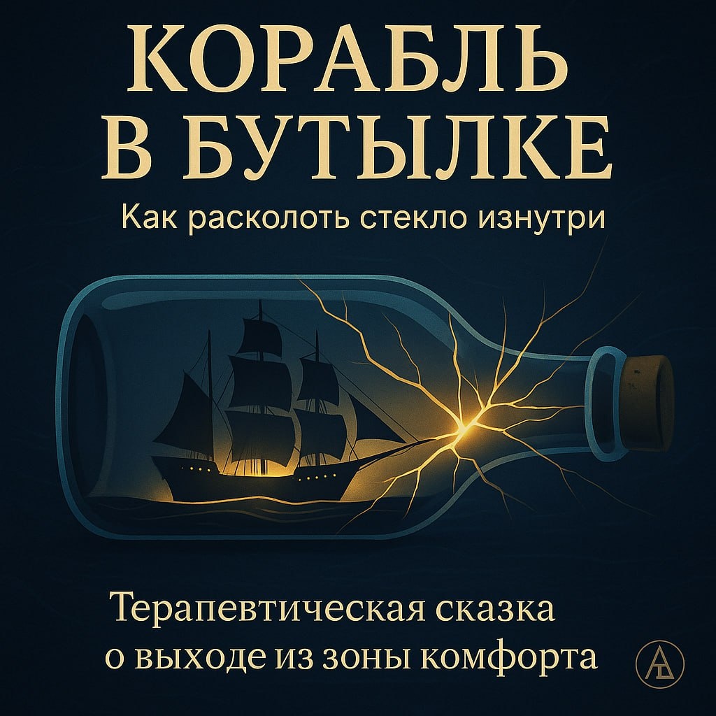 ТЕРАПЕВТИЧЕСКАЯ СКАЗКА «КОРАБЛЬ В БУТЫЛКЕ» Жил-был Корабль. Не простой — сильный, с резными мачтами и тугими парусами, готовыми ловить любой ветер. Он помнил, как когда-то бороздил бескрайние океаны, чувствовал солёные брызги на палубе и видел далёкие звёзды над головой. Но сейчас его мир был тих, прозрачен и ограничен гладкими стеклянными стенами. Он стоял на полке, в самой красивой бутылке. Его называли чудом. «Смотри, какое совершенство! — восхищались гости. — Как он туда попал? Какой мастер это сделал?». И Корабль начинал верить, что он — произведение искусства. Его жизнь — это быть идеальным, безопасным и радовать глаз. Волны за стеклом казались ему слишком бурными, ветра — слишком опасными. Зачем рисковать, если здесь так спокойно? Так надёжно. Но по ночам, когда в доме воцарялась тишина, его деревянные борта тихо стонали. Он слышал зов Прилива. Он видел отблески Луны на своих парусах — не нарисованных, а настоящих. Его сердце, киль, скучало по глубине. Однажды ночью к полке