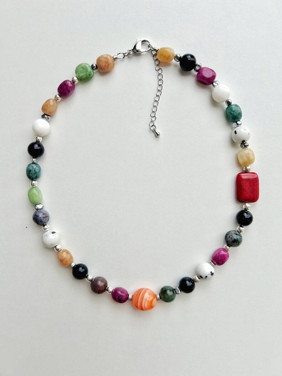 Хотим представить новинки из натуральных камней. Во-первых, это два микса из оттенков. Считаем, что сочетать в изделии сразу много цветов идеально, потому что мы можешь носить их с огромным количеством образов. Везде будут встречаться цвета из изделия. Значит можно сделать вывод, что такие украшения: 1. Универсальные 2. За счет цвета добавляю образу изюминку. Колье «Stones”-колье из натуральных камней Халцедона, прессованного говлита, Агата, Агата Ботсвана, гематита, индийского Агата. Латунь. Родий Цена: 4800 руб Чокер из Халцедона-чокер из микса оттенков Халцедона, микс оттенков и бусин жемчуга Майорка. Латунь. Родий Цена: 4200 руб 👉 Как заказать? · Напишите нам в Директ · Или в WhatsApp/Telegram по номеру: +7 (925) 033-61-01