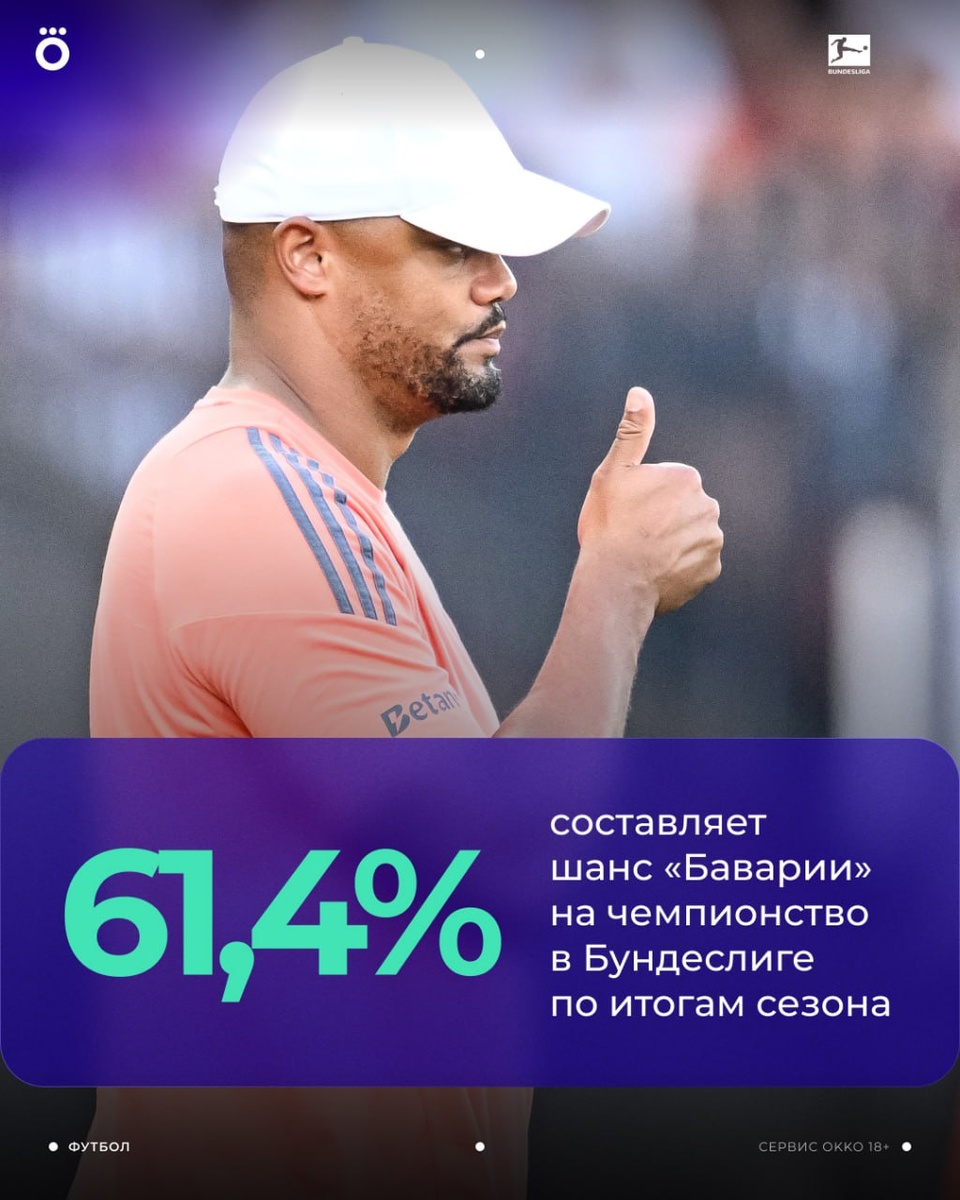 «Бавария» — главный претендент на победу в Бундеслиге 🏆 Спортивный центр международных исследований выяснил вероятность чемпионства мюнхенцев, используя «спортивные, экономические и демографические переменные», и получил 61,4%. На 2-м месте — дортмундская «Боруссия» с 8,8%, а на 3-м — «Байер» с 8,3%. Верим? 👀
