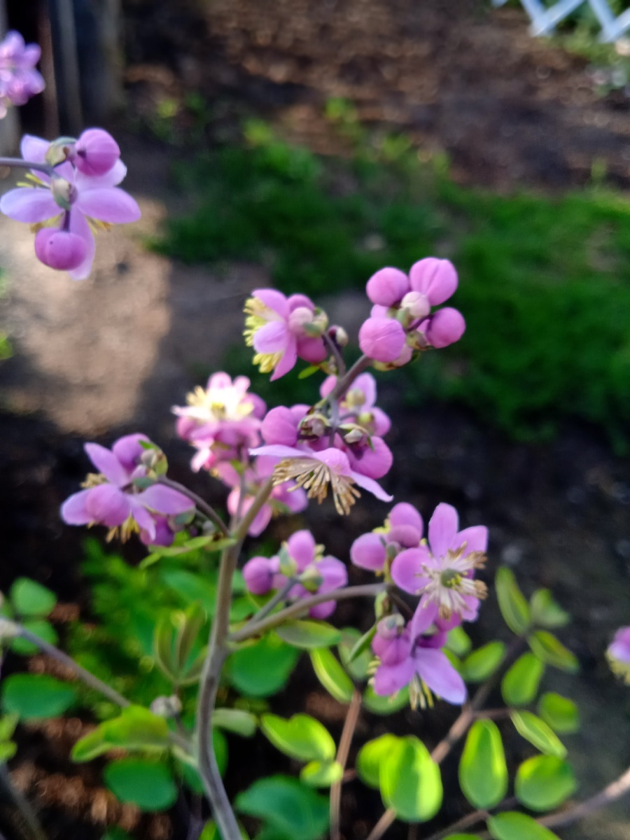 Говорят, что он не любит близкого соседства с другими растениями. Я пока этого не заметила, но по сути у него достаточно личного пространства. Василистник на одном месте может расти около 10 лет. Пересадки плохо переносит. Имейте в виду, что при сильном ветре или ливне может разваливаться куст нужно будет подвязывать растение к опоре.