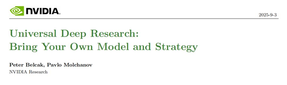 Новый шаг NVIDIA в сторону «исследовательских агентов» NVIDIA объявила о создании Universal Deep Research (UDR) — универсальной системы глубоких исследований, совместимой с любыми крупными языковыми моделями (LLM). Пользователи смогут самостоятельно разрабатывать и настраивать стратегию исследований в естественном языке, а система превратит её в исполнимый исследовательский процесс. Другими словами, речь идёт о платформе, где каждый может собрать персонального «исследовательского агента», работающего поверх любого LLM — от Gemini до GPT‑5. Чем UDR отличается от существующих решений До настоящего времени все «deep research agents» страдали серьёзными ограничениями: UDR ломает эти барьеры. Ключевые возможности UDR Ограничения и вызовы Пока UDR находится на стадии прототипа. Авторы сами указывают на слабые места: Решение этих проблем команда NVIDIA видит в развитии библиотек стратегий, улучшении пользовательского контроля над работой LLM и интеграции полуавтоматических методов проверки к