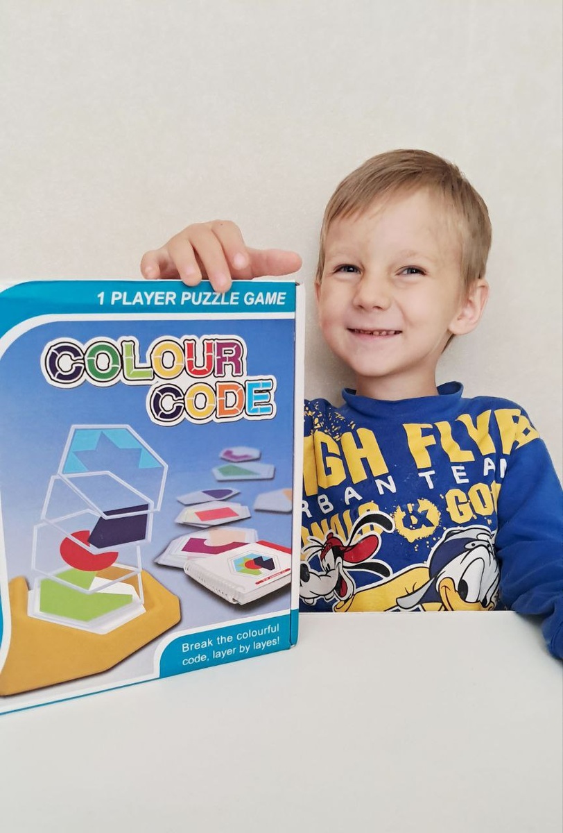 🔠🔠🔠🔠🔠🔠🔠 🔠🔠🔠 Игра-головоломка рассчитана на детей от трех лет. Помогает в развитии: ✔️Мышления ✔️Внимания ✔️Логики ✔️Памяти ✔️Мелкой моторики ✔️Усидчивости Имеет четыре уровня сложности: 🟢Зелёный-новичок 🟡Жёлтый-юниор 🔴Красный-эксперт 🔵Синий-мастер Правила игры очень простые: Необходимо согласно выбранному заданию собрать цветную комбинацию,накладывая плитки друг на друга с изображением подходящих форм.