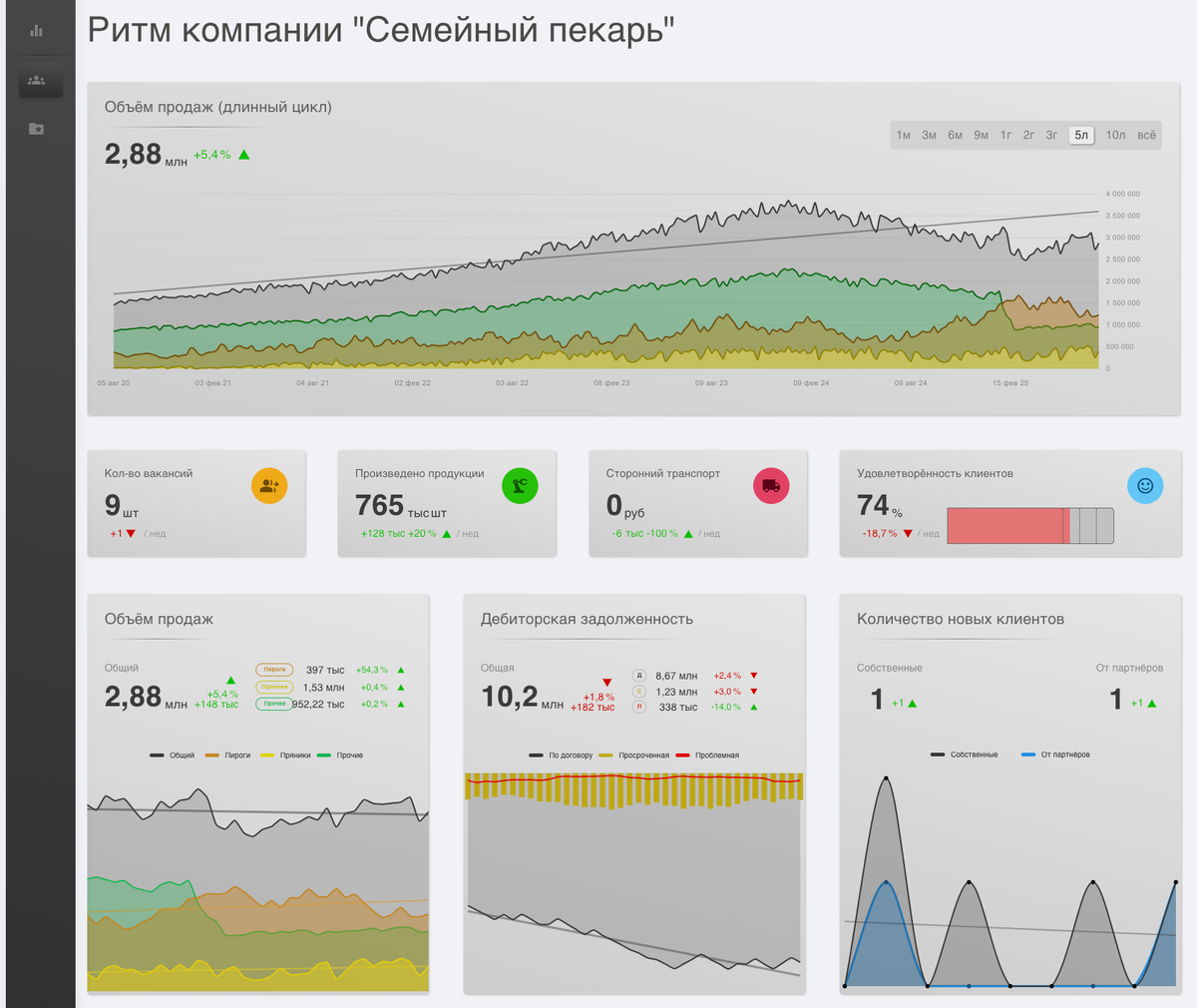 Ведь, ещё же, они могут быть визуально красивыми и приятными… и даже на ощупь🫰… …что делает анализ деятельности не только полезным, но и по-настоящему увлекательным занятием! Теперь можно настроить Вашу уникальную информационную панель руководителя в нашем приложении «Ритм» - где визуальное отображение графиков и диаграмм мы делаем в том виде, которое нужно именно Вам! У владельцев и руководителей появляется возможность видеть результаты работы компании и их подразделений, а также динамику изменения показателей в ключевых областях. Это конструктор и мы предлагаем Вам визуализацию графиков и диаграмм на новом уровне 🤩 На том, который нужен именно Вам + всегда готовы изменить его вид и пересобрать 📈 🪚 → 🧩 🔨 → 📊! _________________________________ Вышеприведённые графики смоделированы в информационной панели руководителя "Ритм". Приглашаем в наш Телеграм-канал.