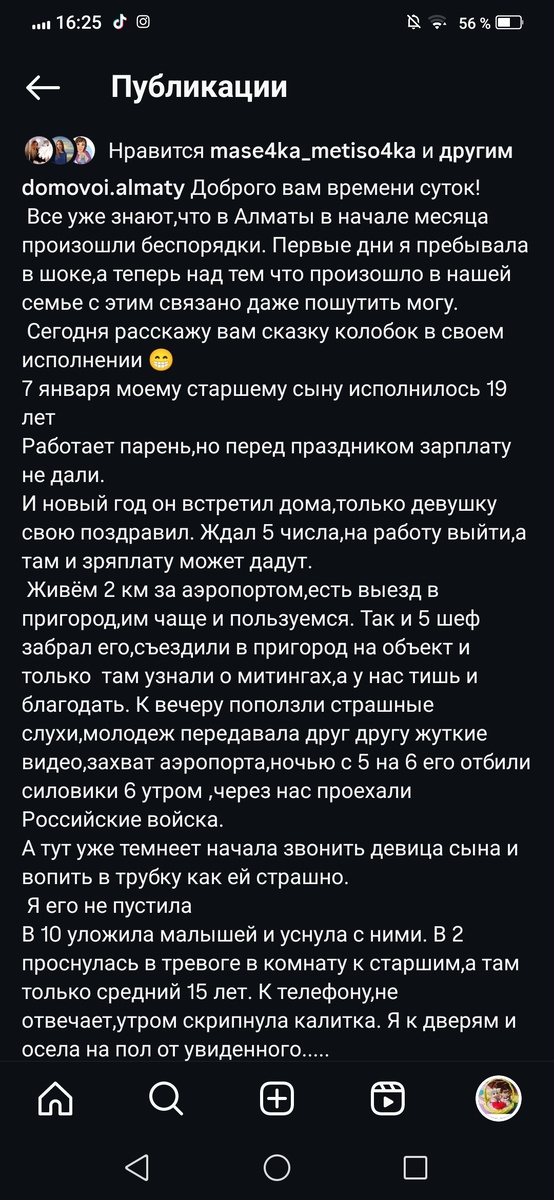 И вспомнила 2022 год. Не успели мы отгулять новогодние праздники. Как 4 января мирная демонстрация ,быстро и уверенно переросла в беспорядки! Которые ,не так сильно,но все же затронули и мою семью. Могло бы все закончиться и намного хуже!