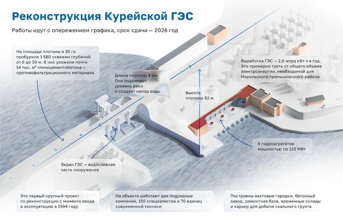 ⚡️«Норникель» укрепляет плотину и ремонтирует экран на Курейской гидроэлектростанции